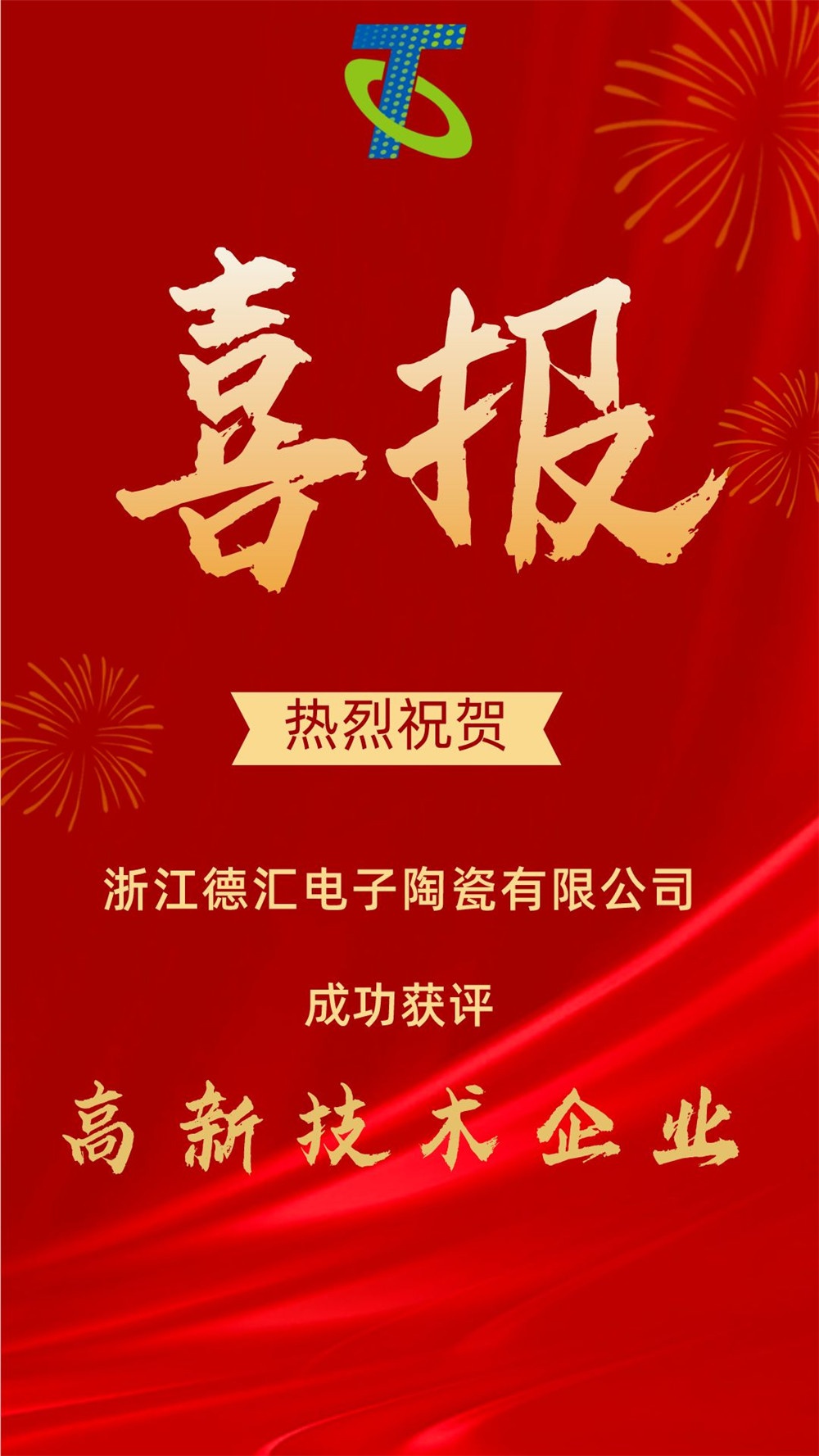 熱烈祝賀德匯電子被評(píng)定為高新技術(shù)企業(yè) 2023-02-01 10:18:50 浙江德匯電子陶瓷有限公司 瀏覽次數(shù) 1788 上一條華為供應(yīng)商誠(chéng)信廉潔宣傳 下一條德匯總經(jīng)理徐榮軍發(fā)表2023年新年致辭