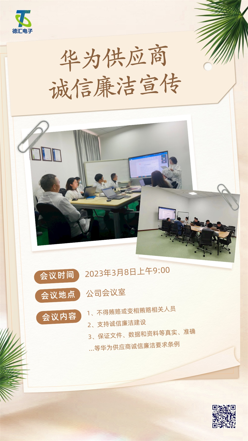 華為供應(yīng)商誠信廉潔宣傳 2023-03-08 15:39:56 浙江德匯電子陶瓷有限公司 瀏覽次數(shù) 1796 上一條德匯精益數(shù)字化智能制造項(xiàng)目啟動(dòng)大會(huì)圓滿召開 下一條熱烈祝賀德匯電子被評定為高新技術(shù)企業(yè)